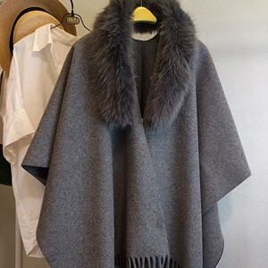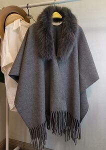 可拆卸毛领貉子毛皮草含羊毛开叉披肩纯色轻奢高级百搭气质外套女