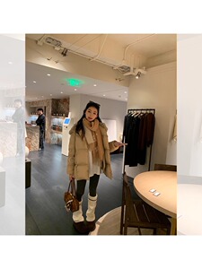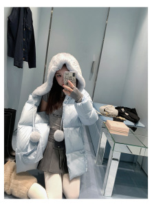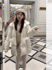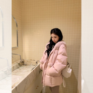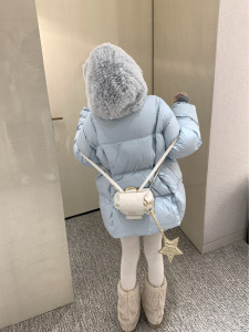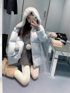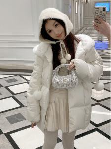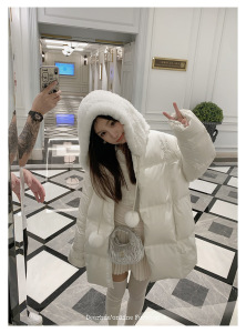 雷克斯獭兔毛皮草连帽 『雪球羽绒』90白鹅绒中长款羽绒服外套女