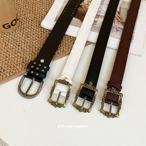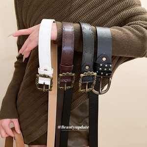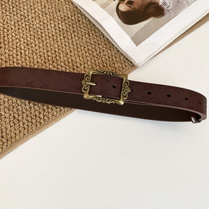复古民族风皮革花纹方形腰链时尚简约百搭气质腰带小众设计感腰饰