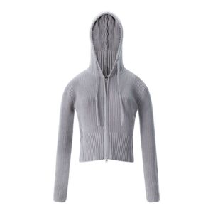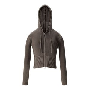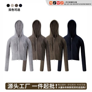 2025美式复古女装双拉链针织开衫短款连帽毛衣内搭外穿女秋外套上