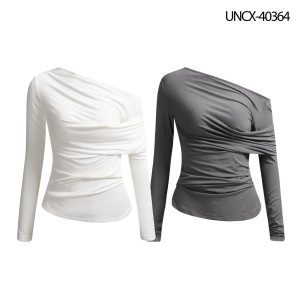 Fudge Pink 25秋季New美式复古辣妹个性斜肩设计感长袖T恤