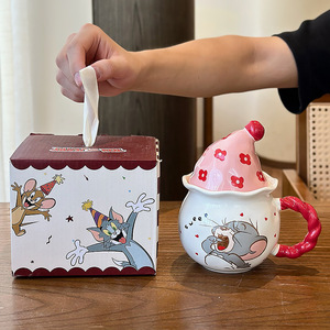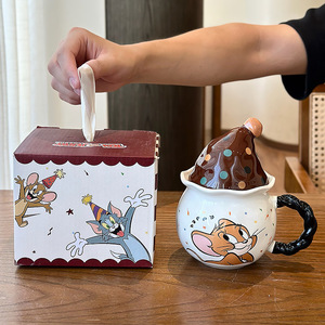 猫和老鼠陶瓷马克杯带盖家用办公室新款情侣水杯子中秋节生日礼物