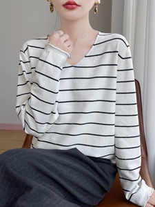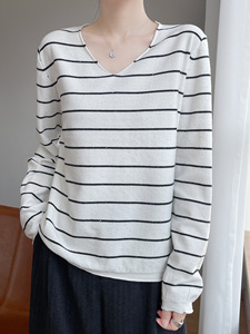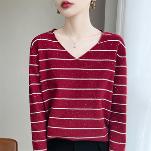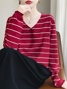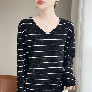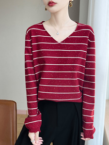 亮片针织衫高级感秋冬新款V领条纹打底衫套头时尚减龄长袖毛衣女