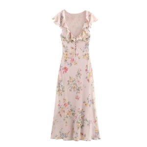 PB&ZA女装2025年秋季新款知性美修身款花朵印花迷笛连衣裙8851450