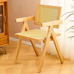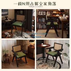 昌迪加尔椅北欧实木餐椅侘寂风餐椅白蜡木中古扶手靠背书桌实木椅