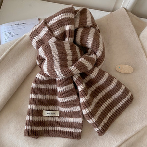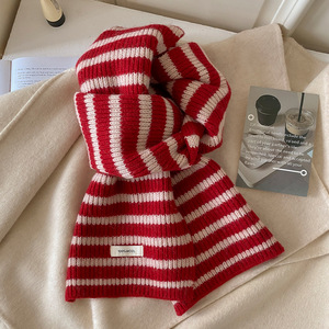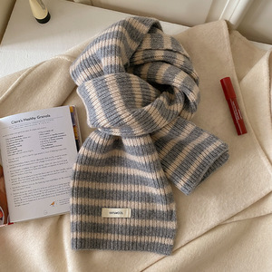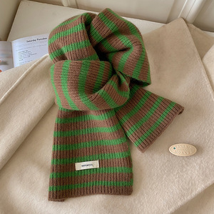 日系简约情侣围巾女秋冬新款条纹针织羊毛围巾学生百搭保暖围脖潮
