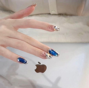 【蓝色星河】纯手工穿戴甲蓝猫眼碎钻爆闪光疗高级显白纯手作美甲