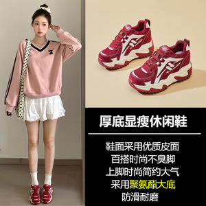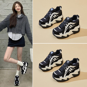 2025秋季新款内增高休闲老爹鞋女厚底拼色老爹鞋学生运动女鞋34码