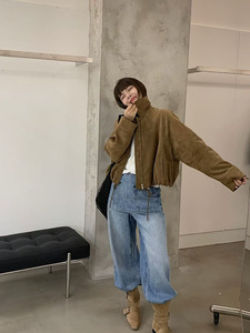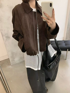 复古翻领麂皮绒外套女欧洲站2025年秋季新款韩版抽绳时尚夹克上衣