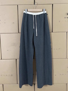 无D推荐!秋季bi备~灰色撞色设计拼接阔腿裤女柔软舒适显瘦镰刀裤