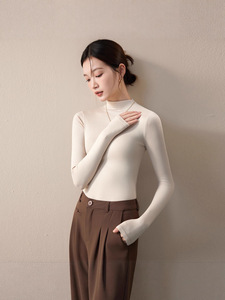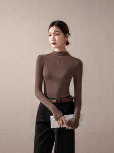 一体绒半高领打底衫女2025秋冬新款加绒加厚保暖重磅长袖女装T恤