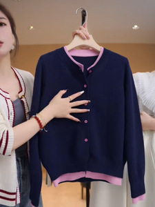 韩系感撞色假两件针织衫女秋季2025新款时尚宽松显瘦开衫外套