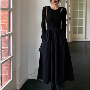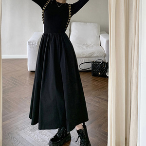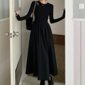 赫本风镂空针织长袖连衣裙女春秋新款设计感小众气质修身显瘦长裙