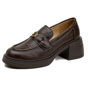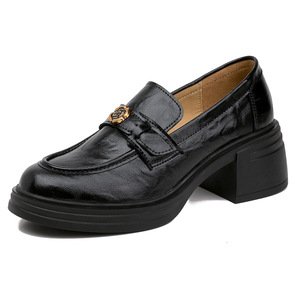 现货款~英伦复古厚底乐福鞋女粗跟山茶花乐鞋女配裙子黑色小皮鞋