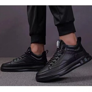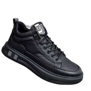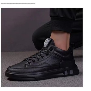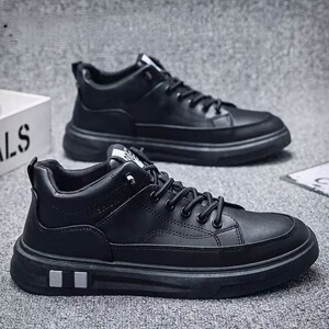 厂家男秋季运动板鞋懒人松紧带休闲软轻便男黑色鞋皮面鞋新货批发