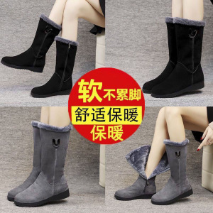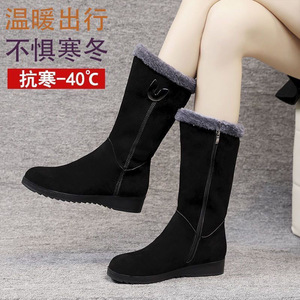 坡跟防滑保暖侧拉链棉靴2025冬季百搭雪地靴女加绒加厚高筒时装靴