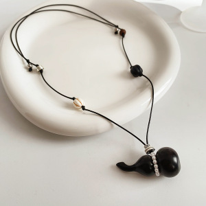 蜡绳木头葫芦串珠珍珠项链新中式禅意毛衣链复古民族风百搭饰品女