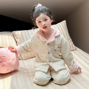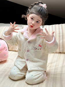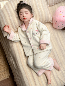 女童法兰绒睡衣秋冬季2025新款女孩宝宝洋气珊瑚绒儿童冬款家居服