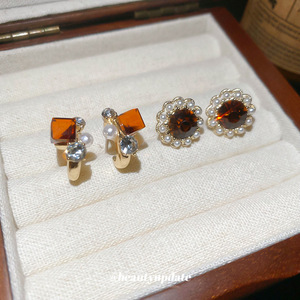银针镶钻珍珠几何圆形耳钉法式宫廷风气质耳环奢华轻奢高级感耳饰