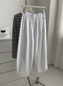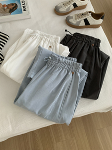 简约纯色直筒工装裤女减龄韩版抽绳高腰贝壳扣九分气球裤2025秋季