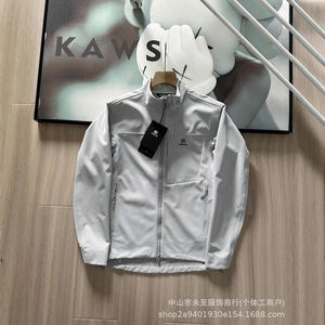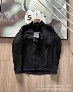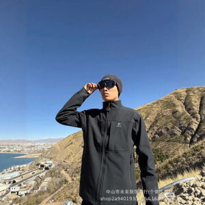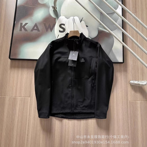 凯乐石刺绣冲锋衣男士秋冬立领户外运动休闲软壳衣夹克加绒外套潮