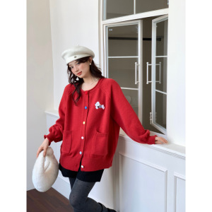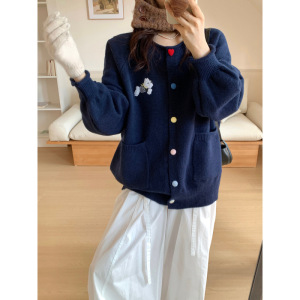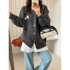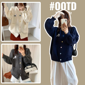 实拍孕妇装新款韩版时尚秋冬彩色扣子长袖针织开衫女宽松毛衣外套