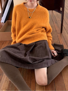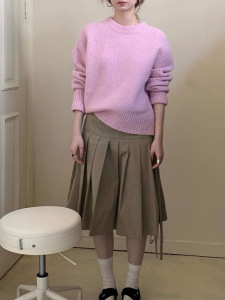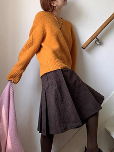 HelloooEat 圆领套头羊毛长袖毛衣女秋季设计感镂空针织衫内搭