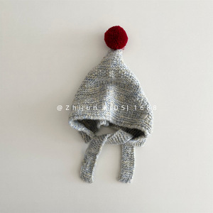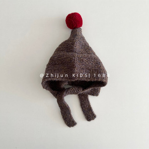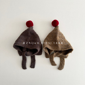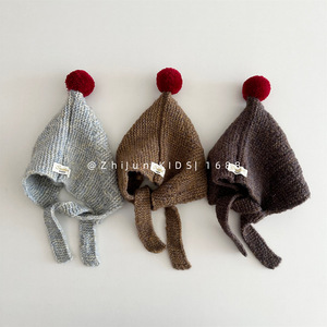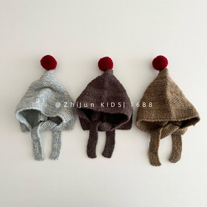 宝宝帽子韩版秋冬尖顶毛球可爱保暖护耳帽男女儿童复古针织精灵帽