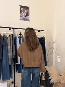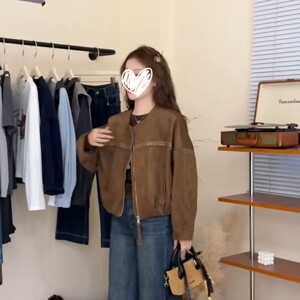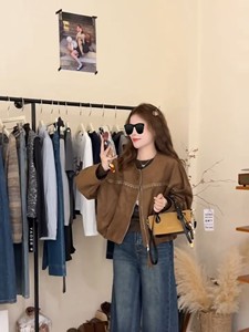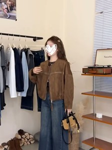 美拉德棕色短款圆领麂皮绒外套女秋2025新款小个子巨好看百搭夹克