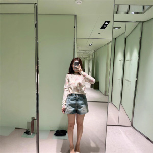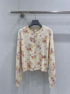 2025秋季新款南油pra少女风减龄甜美单排扣碎花羊毛圆领针织开衫