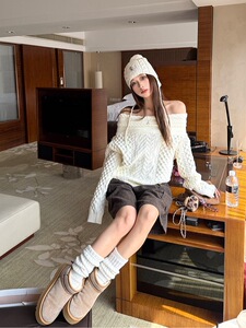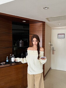2025新款小香风白色一字肩长袖毛衣女装秋季百搭气质宽松显瘦上衣