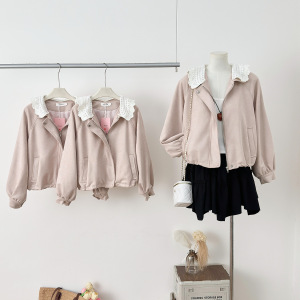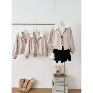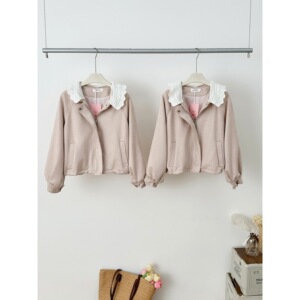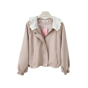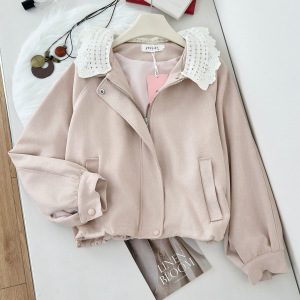 韩系千金焦糖泡芙 花边领仿麂皮花苞拼接气质显瘦女款短款外套