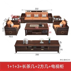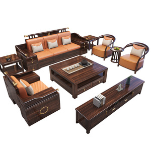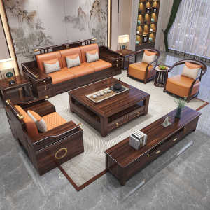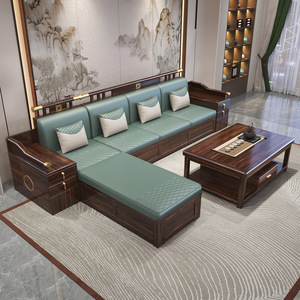 新中式乌金木实木沙发组合2025新款冬夏两用别墅木质客厅储物家具