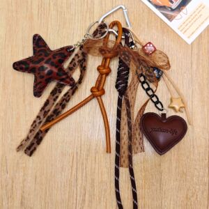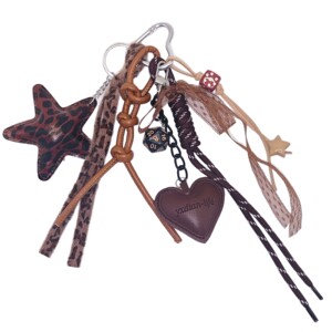 创意复古时尚豹纹五角星挂饰钥匙扣皮质爱心编织绳串珠包包挂件