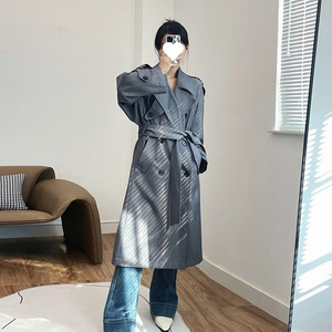 设计翻领高个子英伦廓形简约中长款大衣风衣外套女春秋立领感