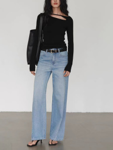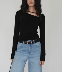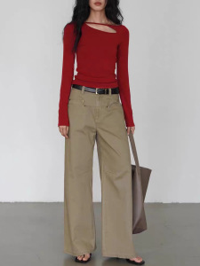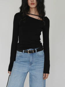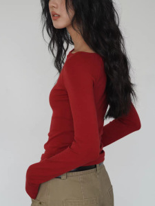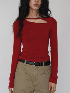 EIGHTHMONT 红色侧挖空长袖衣女设计感小众春季显瘦打底T恤
