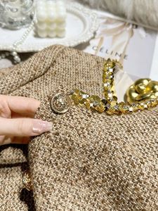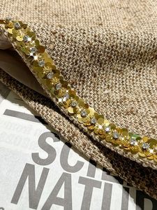 高级感小香风秋冬新款金色编织亮片毛呢短外套女圆领洋气短裙套装
