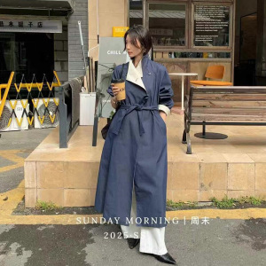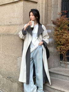 极简风衣女外套2025春秋新款慵懒风中长款休闲立领撞色小个子大衣