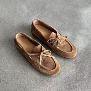 复古英伦风做旧系带软底休闲乐福鞋一脚蹬平底小皮鞋蝴蝶结单鞋女