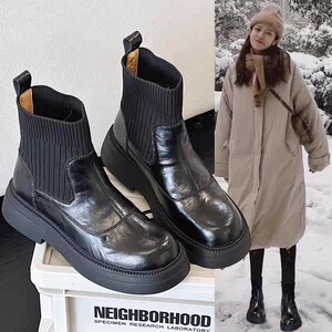 英伦风增高厚底马丁靴女2025年秋季新款加绒短靴弹力靴保暖瘦瘦靴