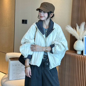 2025秋冬新款欧货百搭棉服女设计感格子拼接气质外套休闲宽松上衣