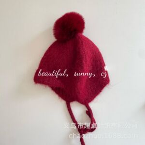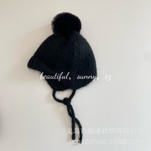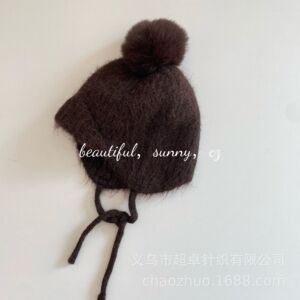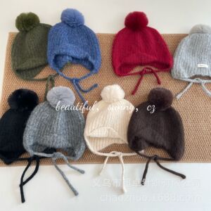 复古大童成人品质款球球羊毛显瘦显脸小护耳毛线帽