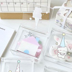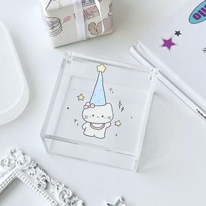 原创星星帽小熊小猫透明亚克力收纳盒ins风防尘收纳置物盒带盖