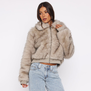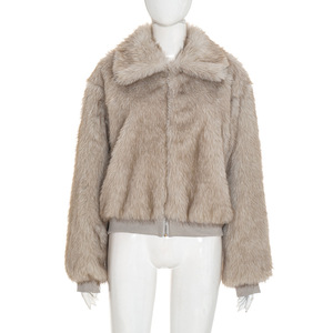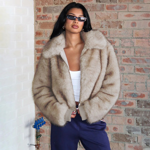 Y25TP388欧美风跨境女装夏季亚马逊新款翻领毛毛拉链宽松收腰外套