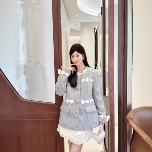 【baby同款】拉家同款2025冬季新款时尚毛呢撞色中长外套上衣