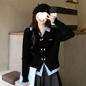 爆款Polo领假两件长袖衬衫女2025春秋季新款宽松百搭显瘦减龄上衣