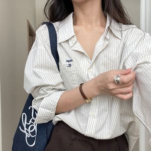 休闲风气质简约条纹长袖衬衫女2025秋季新款宽松显瘦通勤百搭上衣