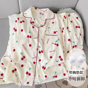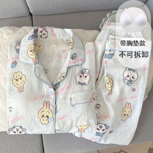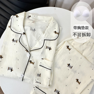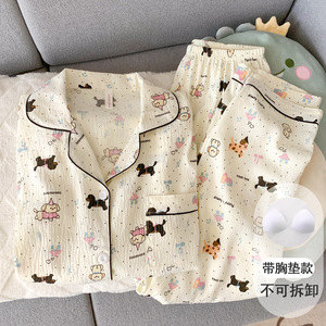 带胸垫mikko睡衣女春秋款云朵纯棉纱可爱外穿学生少女家居服夏季