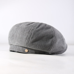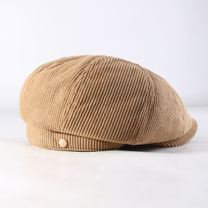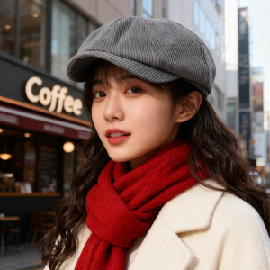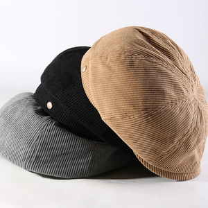 2025秋冬新款灯芯绒八角帽女英伦风贝雷帽复古百搭显脸小帽子男潮