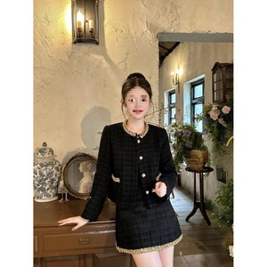 小香风套装女秋季新款法式小香风气质圆领长袖外套高腰显瘦半身裙